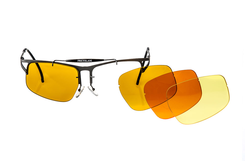 Pretolani Optics - Modelle - Competition TitanioBrille aus TITANIUM rundum in Italien hergestellt, höhenverstellbare Bruecke (Nase) bis zu 11,5 mm einstellbar, 13gr, wird mit 3 Paar AUSTAUSCHBAREN Gläsern geliefert.