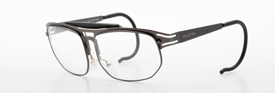 Schiessbrille in dunkelblaugrauem Metall, NICKEL FREI, medizinisch getesteter anti-allergischer Edelstahl, mit Steg, höhenverstellbare Bruecke (Nase) bis zu 9 mm einstellbar (© Pretolani).