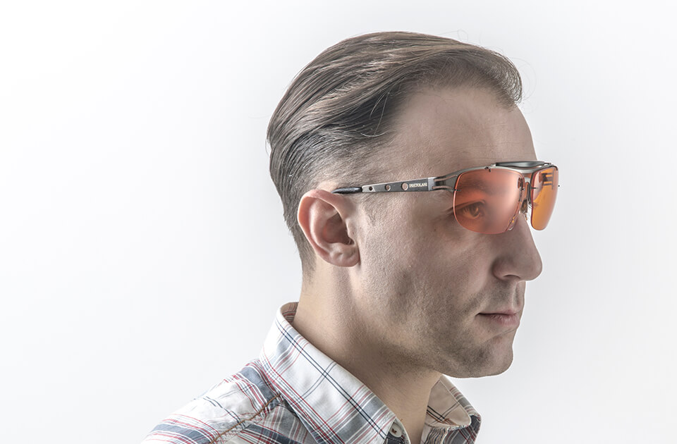 Schiessbrille in undurchsichtigem schwarzem Metall, NICKEL FREI, medizinisch getesteter anti-allergischer Edelstahl, höhenverstellbare Bruecke (Nase), flexible Bügel mit gebogenen Bügelenden und austauschbaren Gläsern. Gewicht: 25 gr Linsengröße: L 65 mm 47 mm H. Breite der Gläser: L. 155 mm