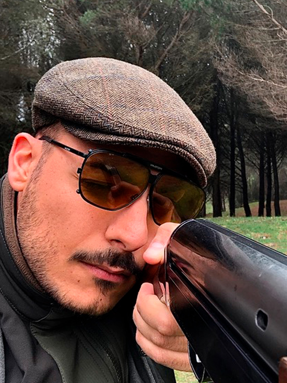 He is using the model FALCON with polarized lenses in BROWN.