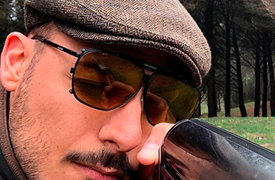 He is using the model TITANIO VISTA with the polarized, bulletproof lenses in YELLOW.